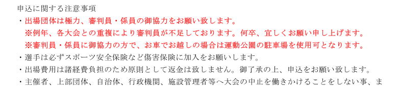 頂きます。申込段階での申込者のミスによるトーナメントの変更は、大会進行の妨げになりますので、原則受付