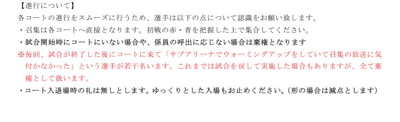 ※トーナメントに誤りがある場合は、大会当日、アリーナ前方に設置しております「クレーム等受付」