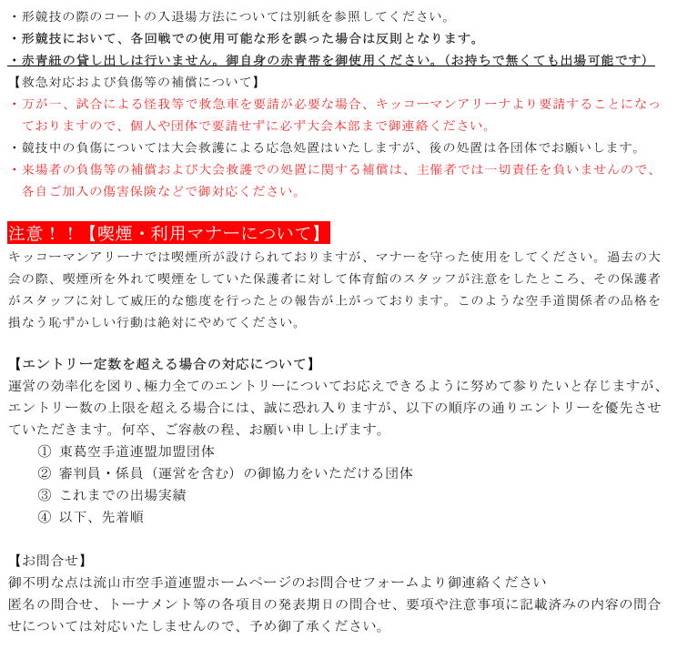 で対応いたします。ただしトーナメントの変更は流山市空手道連盟大会委員の誤りに起因する場合のみとさせて